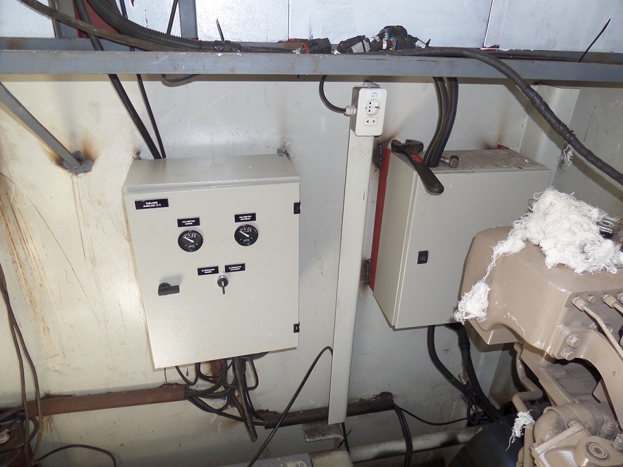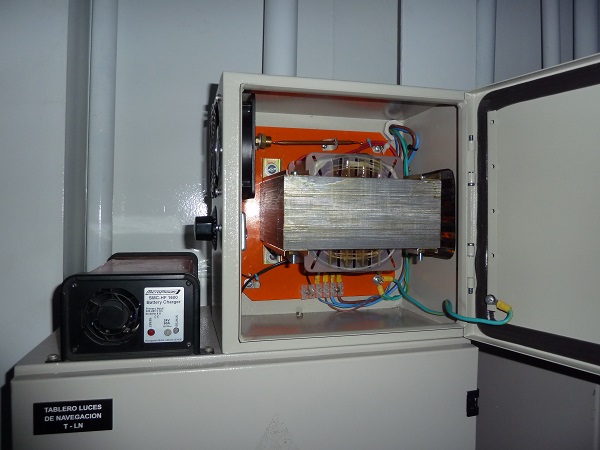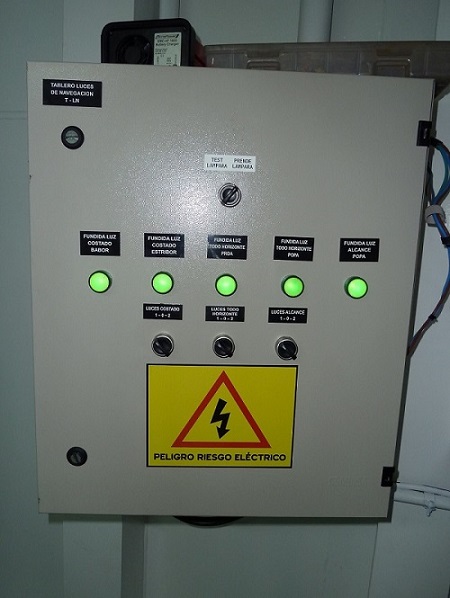 Sistema eléctrico completo, luces de navegación, generador y tableros dentro de la barcaza