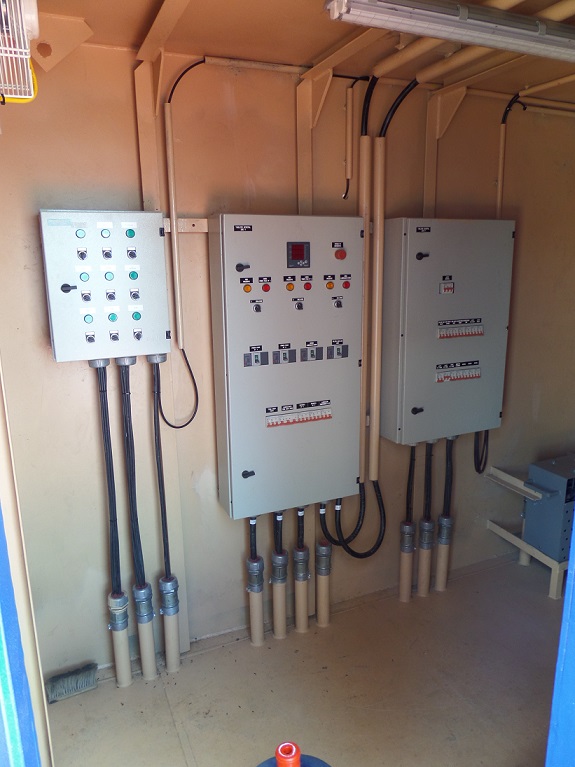 Conexiones electricas completas de la estacion de servicios, asi como tambien la instalacion de tableros y generadores, ductos subterraneos y el techo para el paso de cables.